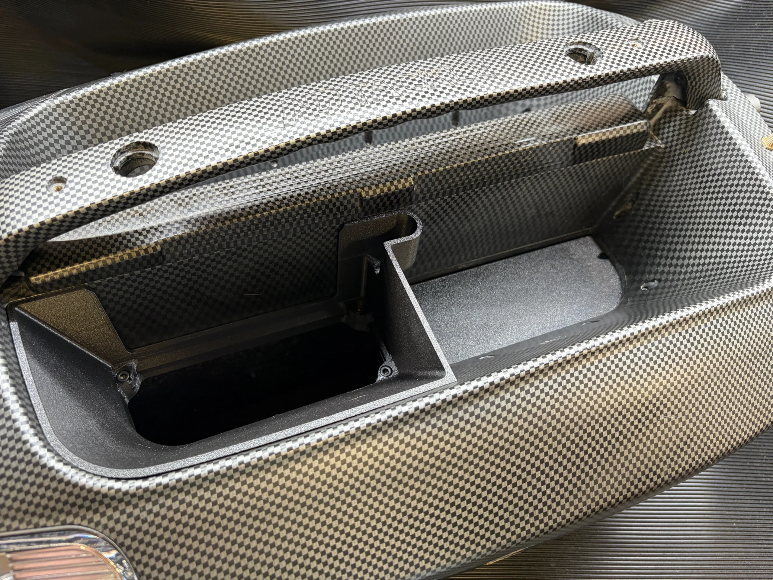 The hopper insert is designed to fit within the hopper at the front, and in fixed to the boat with the existing hardware and a few extra stainless bolts and a new hopper door . The mounting system is manufactured from a Carbon fibre infused plastic to give extra strength and leaves a matt black surface finish. The new door is available in our range of colours to match our existing range.