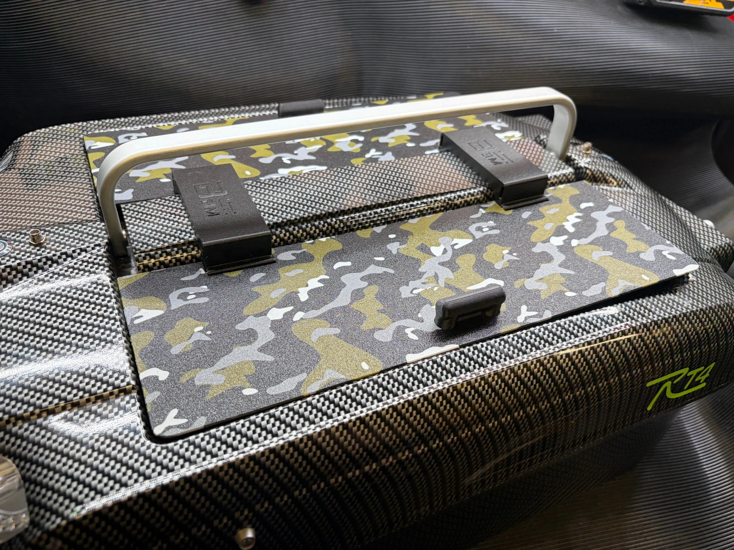This system mounts under the central boat handle and over the battery housing. This ensures it can not be lost during use. Its built-in 303 stainless steel hinge system enables the lids to be lifted easily and due to in internal magnets built inside the lids and hinges, the lids will stay in the upright position during loading on the bank.