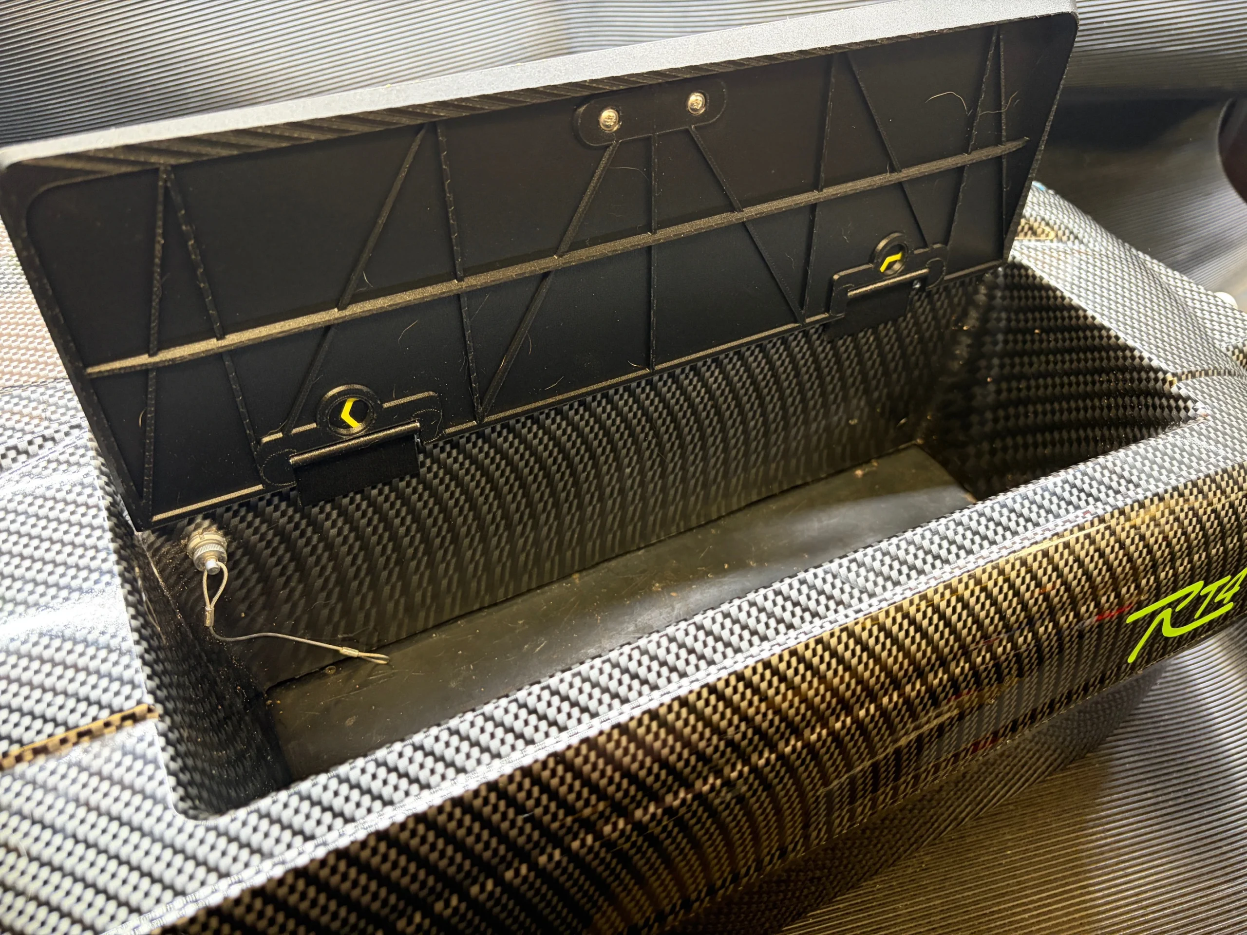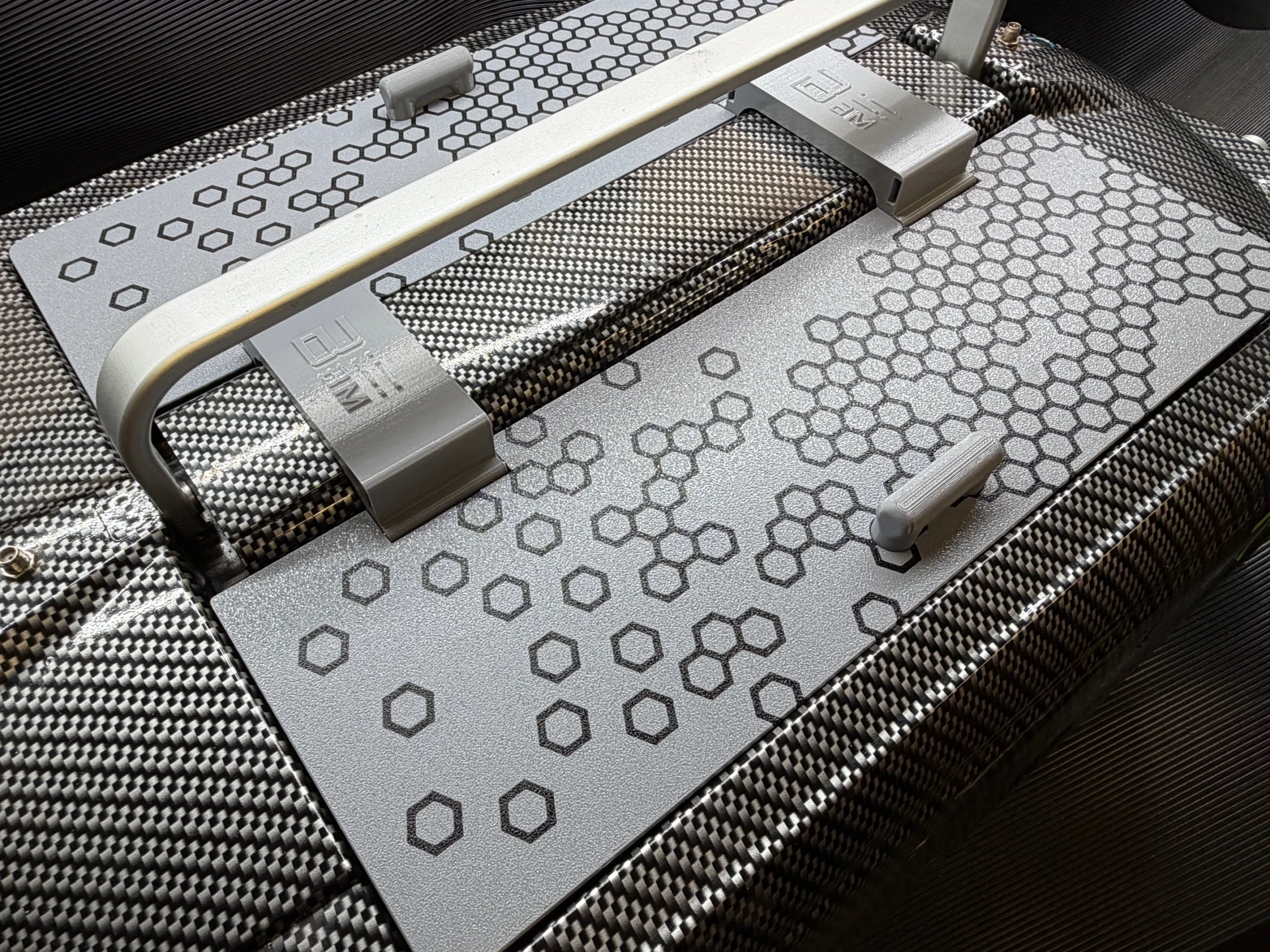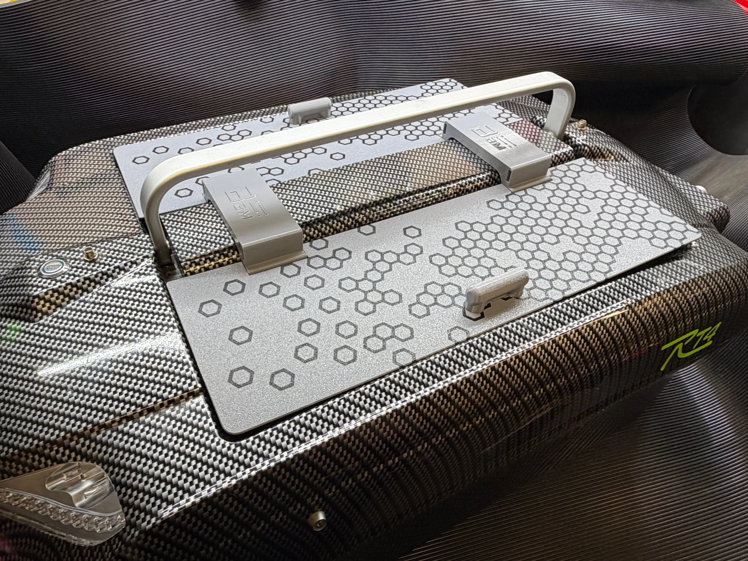 This system mounts under the central boat handle and over the battery housing. This ensures it can not be lost during use. Its built-in 303 stainless steel hinge system enables the lids to be lifted easily and due to in internal magnets built inside the lids and hinges, the lids will stay in the upright position during loading on the bank.