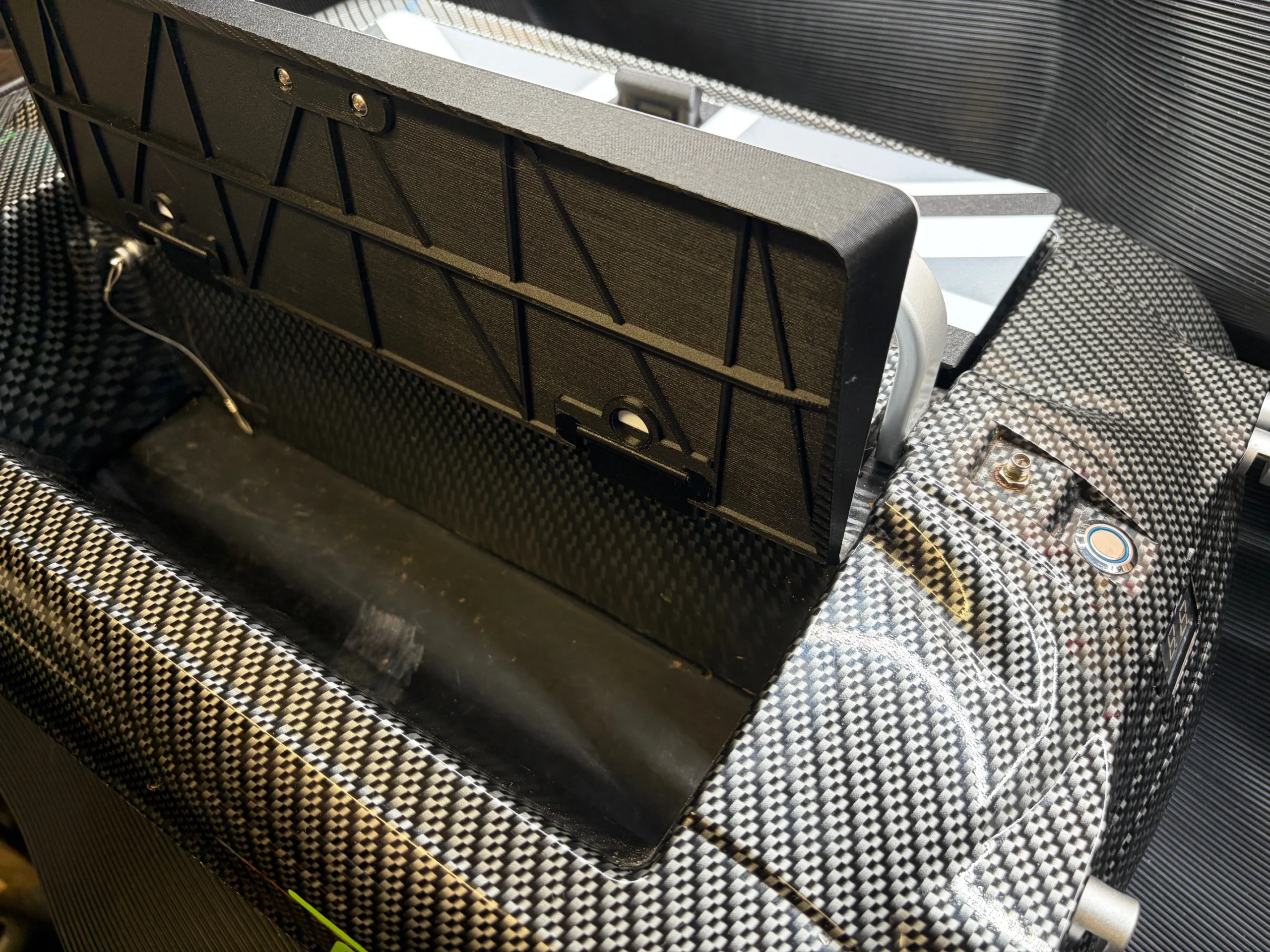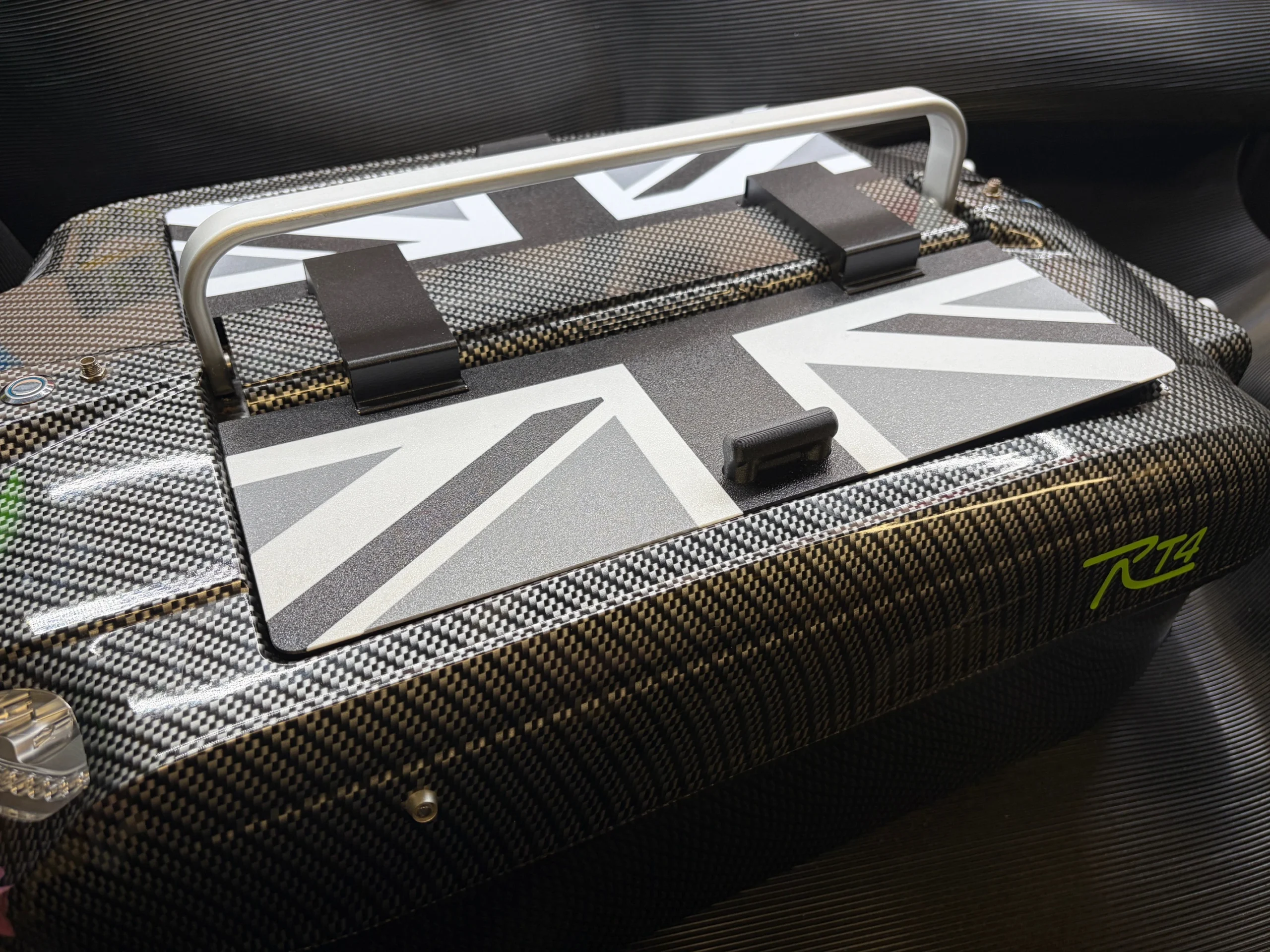 This system mounts under the central boat handle and over the battery housing. This ensures it can not be lost during use. Its built-in 303 stainless steel hinge system enables the lids to be lifted easily and due to in internal magnets built inside the lids and hinges, the lids will stay in the upright position during loading on the bank.